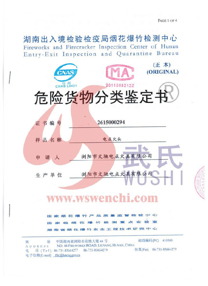 瀏陽市文馳電點火具有限公司(原培文電子點火器材廠),創建于1998年,是一家專業從事研制銷售電子點火產品的民營科技企業,是我國第1枚煙花用電點火頭生產者,是《煙花爆竹電點火頭國標》牽頭起草單位。公司位于中國“煙花之鄉”湖南省瀏陽市,地理位置優越,交通便利。    我公司研制的對象是用電能引燃火藥、做機械功等預定功能的一次性使用的元件或裝置,包括電點火頭(英文名ElectricMatch or Electric Igniter,中文俗稱“電火柴”或“電發火頭”)、電點火管和延期電點火管;我們估且在以后的產品技術欄中將我們研究的產品統稱為電點火具,將電點火器看成是用于提供和控制供給電點火元件點火的電能器材;我們研究的電點火橋路有橋絲式、無橋絲···